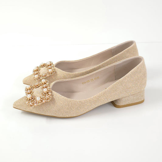 • 珍珠方扣低跟鞋Pearl Buckle Low-Heel Shoes