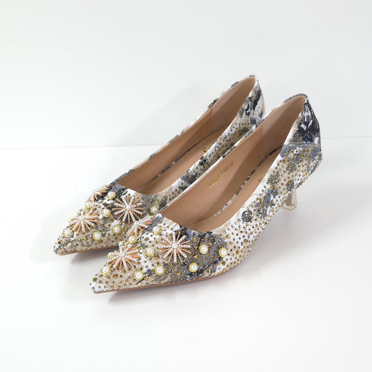 璀璨花卉中跟鞋Floral Embellished Shoes